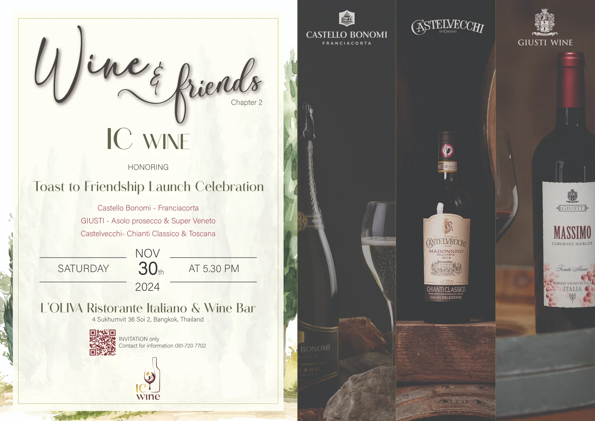 On 30 November 2024, ICWINE proudly celebrated the unveiling of its new label with an exclusive wine dinner at L'Oliva Sukhumvit 36. The evening was graced by Ms. Paola Guida, Italian Trade Commissioner of the Italian Trade Agency — Bangkok, together with esteemed guests from the diplomatic corps, hospitality leaders, culinary experts, and cherished friends who share a passion for Italian wine.